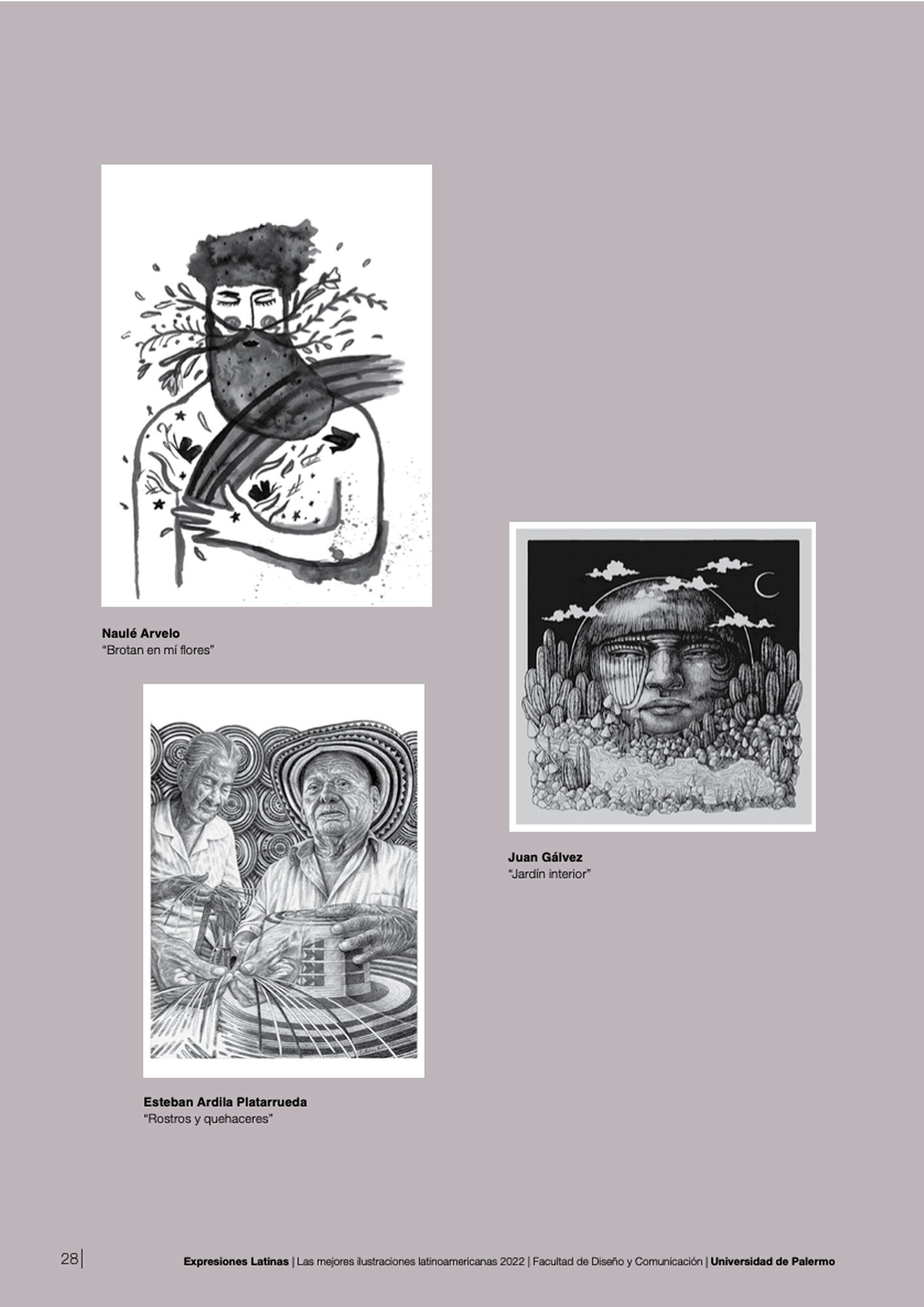 La ilustración superior derecha fue seleccionada para formar parte del libro Expresiones Latinas 2022.